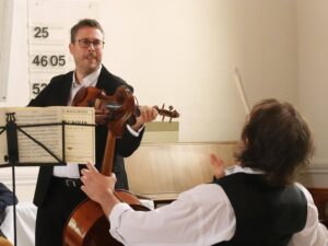 Le 14 août, l’ensemble la 5e saison, sous l’impulsion du violoncelliste Fabrice Loyal et du violoniste Eric Lacroust propose un dialogue entre deux œuvres pour quintette à cordes, l’une de Mozart (1756-1791), l’autre de Mendelssohn (1809-1847). Le concert aura lieu dans la lumière dorée du soir au sein des ruines de l’église abbatiale. En cas de météo capricieuse, un repli est prévu sous la grange.