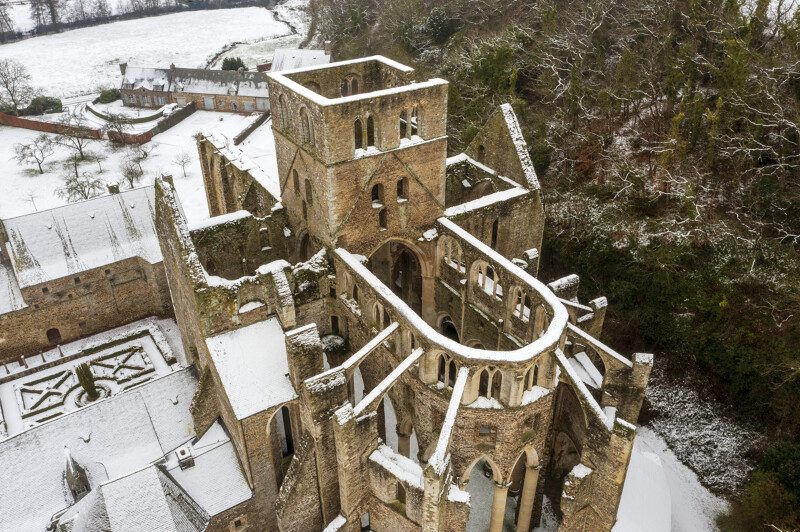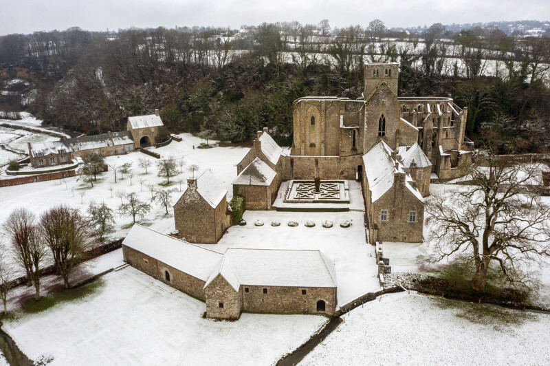 La neige a offert début janvier un visage féerique à l’abbaye de Hambye.